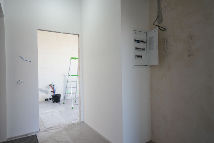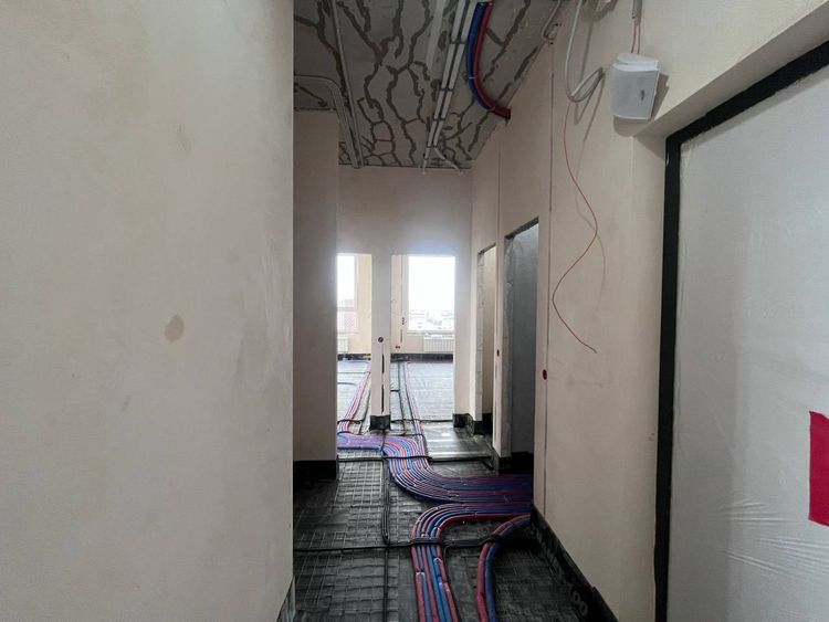 С июня по сентябрь 2025 года в квартире по адресу: г. Москва, ул. Крузенштерна, д. 7 выполнен полный комплекс работ на этапе черновой, инженерной и базовой отделки. В состав работ вошли: возведение межкомнатных перегородок, механизированная и машинная штукатурка стен, монтаж электрики и сантехники, устройство стяжки пола, шпаклёвка и покраска стен, а также плиточные работы. Площадь стен 273 м², площадь пола 62 м².